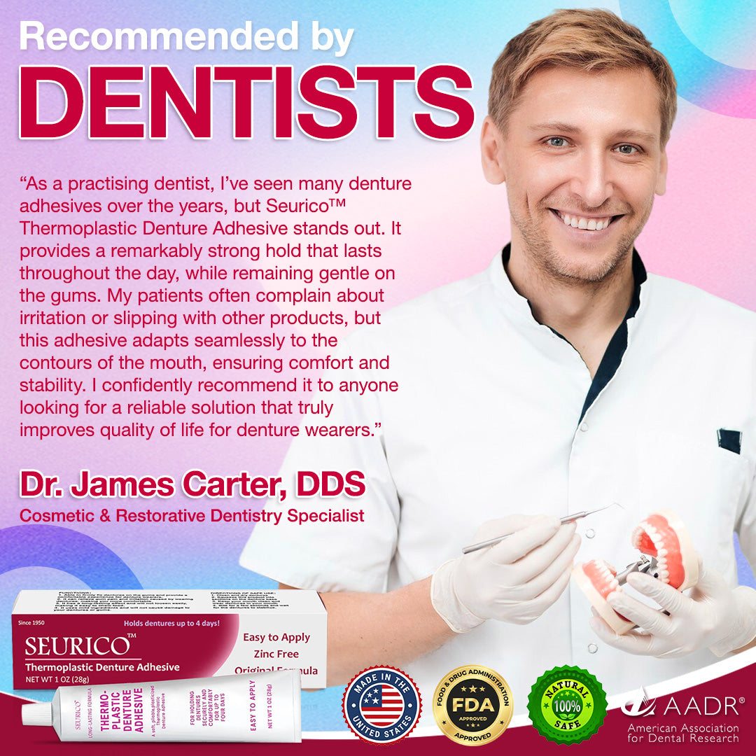 "I was doubtful at first, but the Seurico™ Kit proved itself. It fits so well that I forget I'm wearing dentures!"--David Jackson