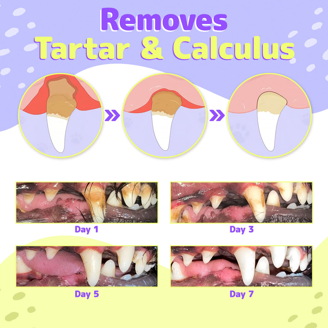 Does your furry friend constantly have bad breath, yellow or stained teeth, or bleeding gums? Are you tired of trying countless brushes, gels, and expensive vet cleanings that stress both you and your pet? Dental problems like tartar buildup, plaque, and gum inflammation not only make your pet uncomfortable, but can also lead to tooth sensitivity, infections, and even tooth loss. It's heartbreaking to see them in discomfort—and worrying about their health every day is exhausting.