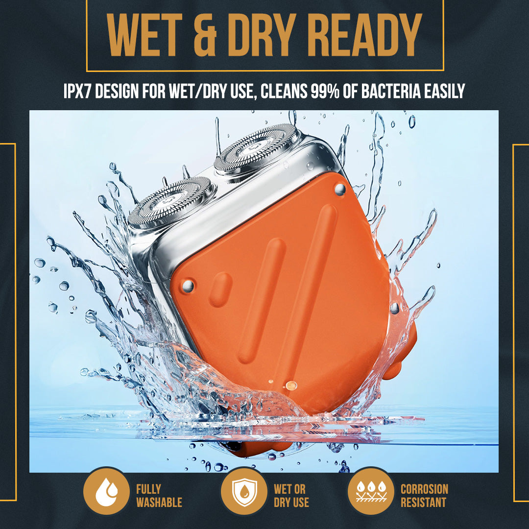 💧 100% Waterproof & Easy Clean: Fully washable design for dry or wet shaving—shower-friendly and simple to rinse under water.