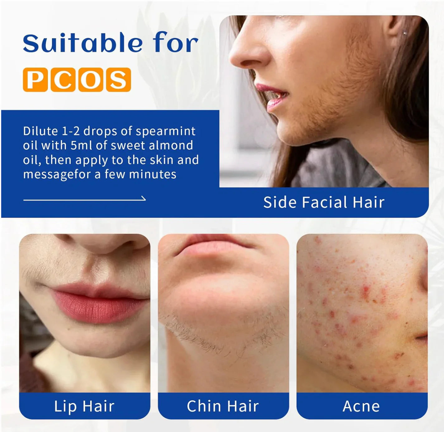 Hair Removal Hiqili® 100% Pure Removal Hair Spearmint Oil is a gentle yet effective solution for unwanted facial hair.