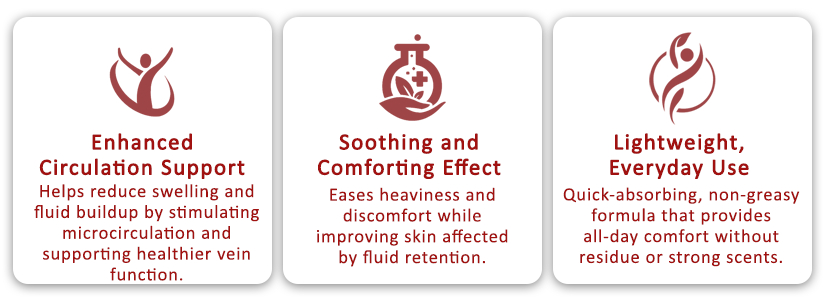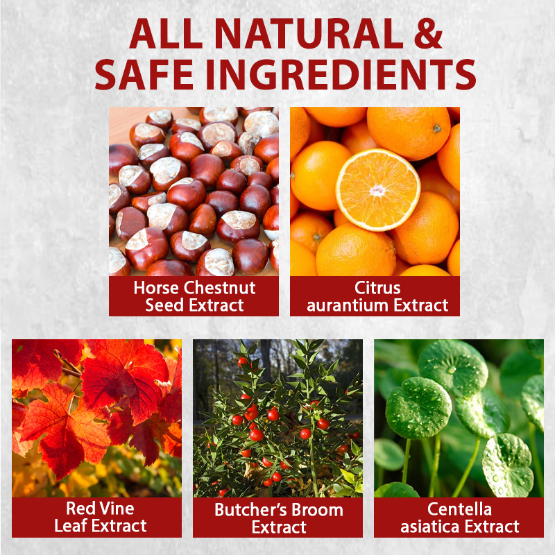 Clinically Proven Ingredients: contains Horse Chestnut Seed Extract (Aescin) and Citrus Aurantium Extract (Diosmin & Hesperidin) to support circulation and reduce swelling.