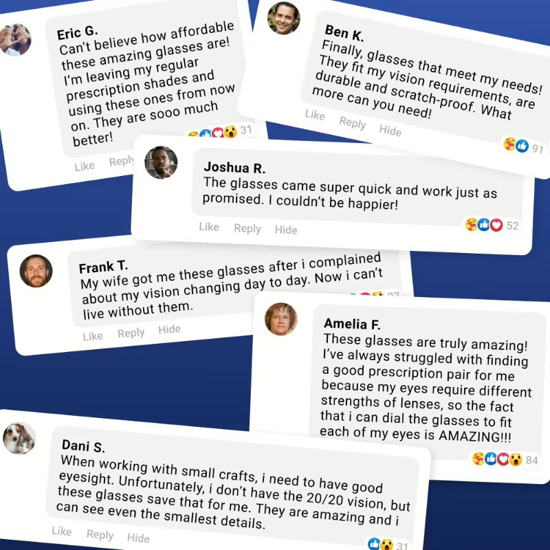 With adjustable glasses, simply twist the dials to perfectly fit the needs of either of your eyes. Whether it’s close-up, far away, or long distances, our glasses deliver crystal-clear vision tailored just for you.
