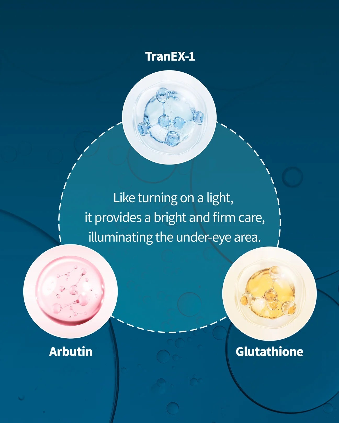 Fight dark circles with our powerful blend of TranEX-1, Arbutin, and Glutathione. This dynamic trio of brightening ingredients works together to reduce the appearance of shadows and bring a radiant glow to the under-eye area.