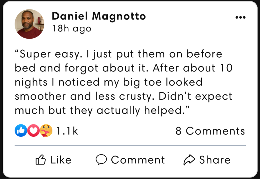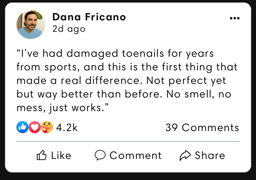 His breakthrough formula features a targeted blend of 17 natural ingredients that penetrate deep into the nail bed, eliminate infection at the root, and support healthy nail recovery.