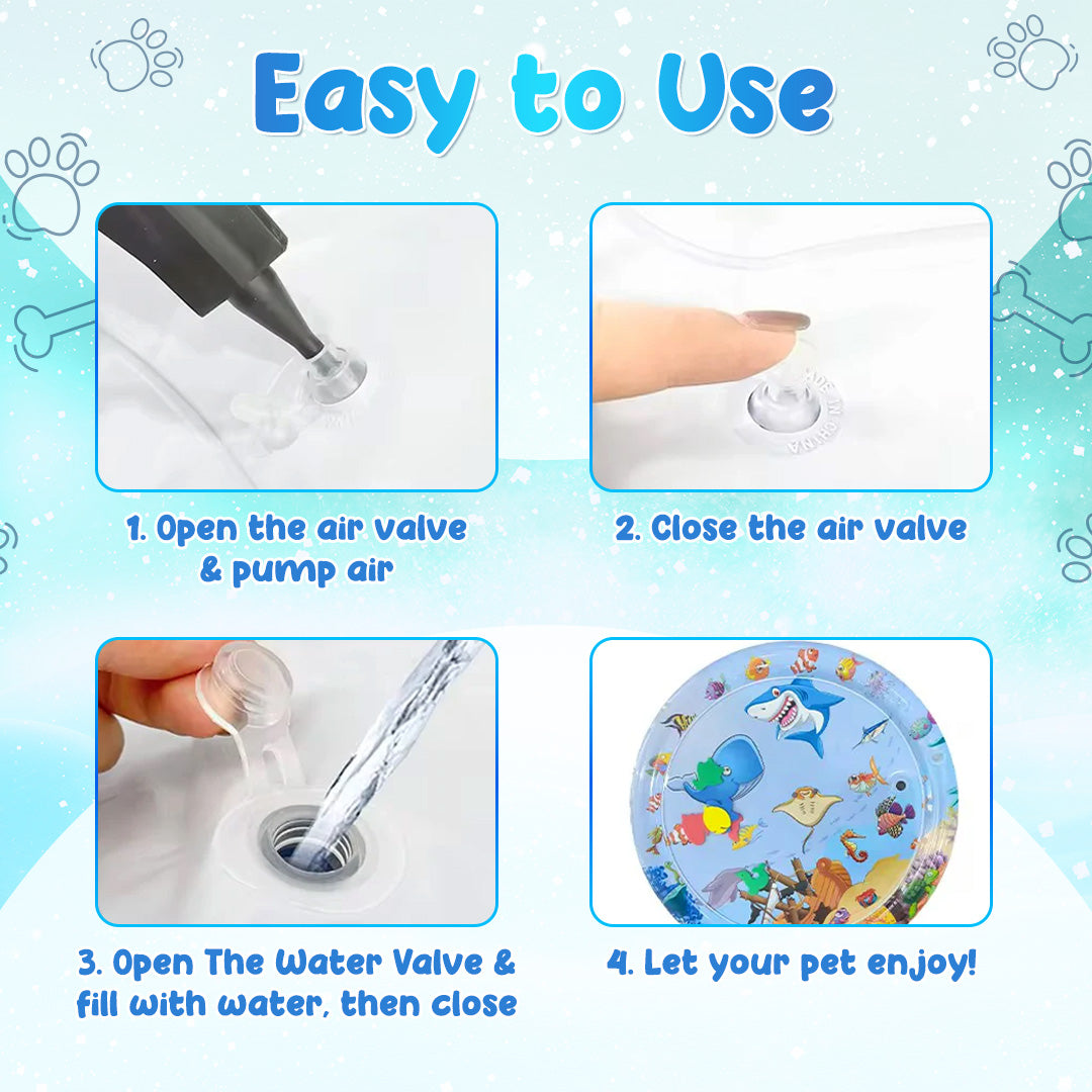The Jeremytis™ Cooling Water Bed is super easy to set up — just fill the outer layer of the bed with air (a pump is included in the package), then fill the center with cool water. Place the bed indoors or outdoors and watch your pup go crazy over it!