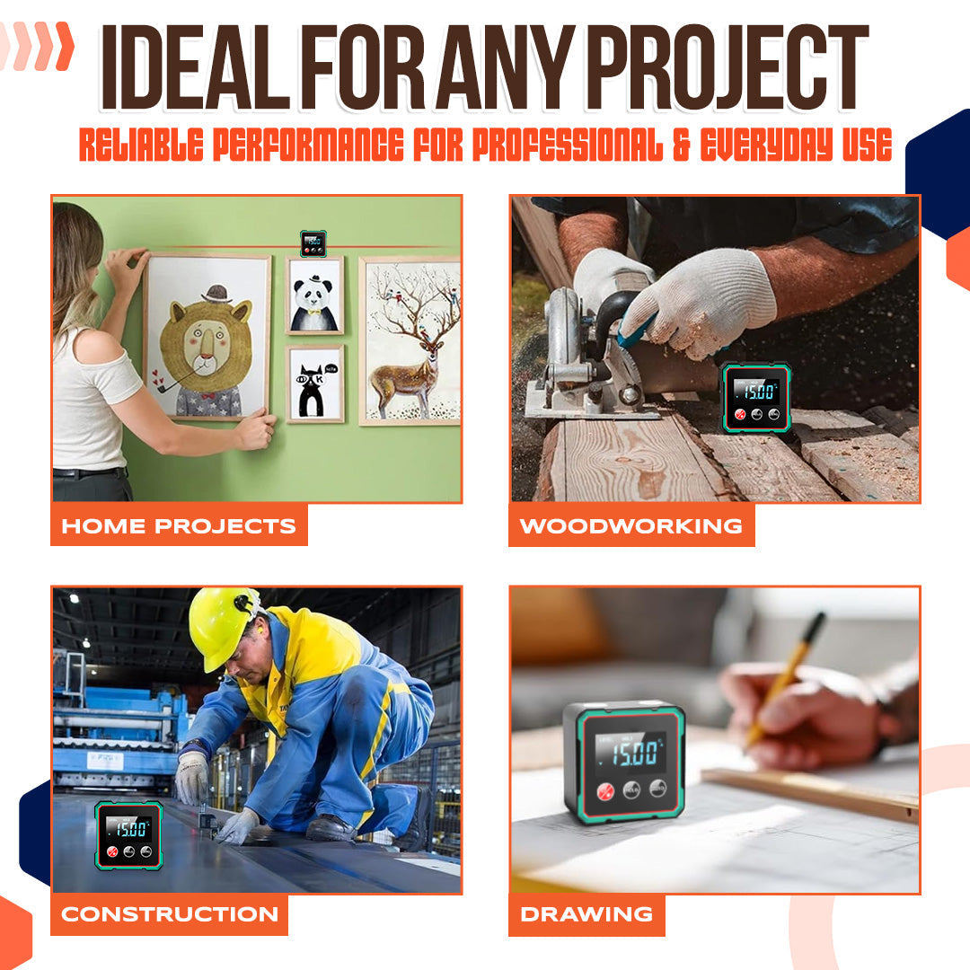 It provides precision up to ±0.2°, making it four times more accurate than traditional bubble levels. Perfect for both DIY and professional work.