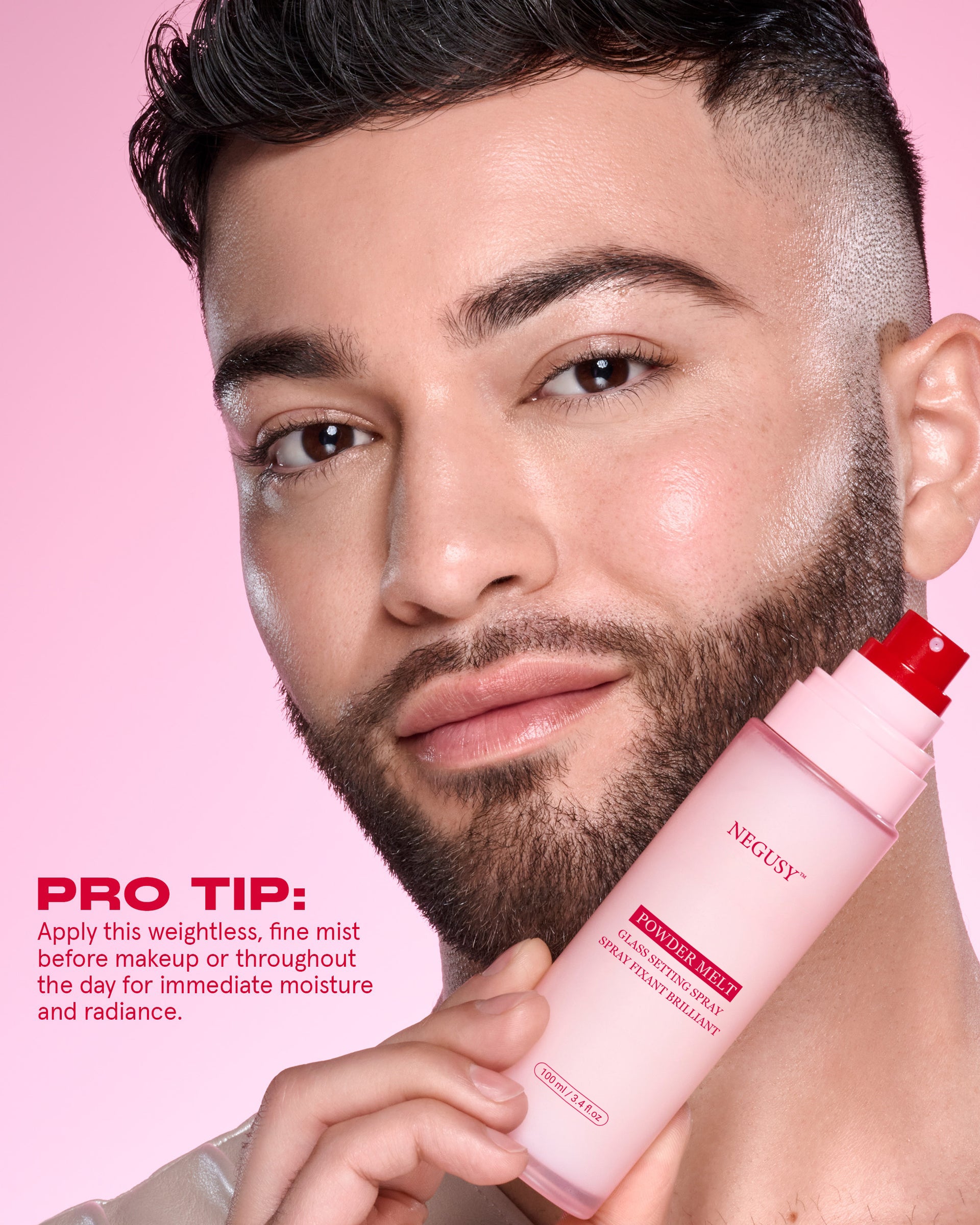 Negusy™ feels lightweight and refreshing and dries down to a glassy finish, leaving skin hydrated and glowing.