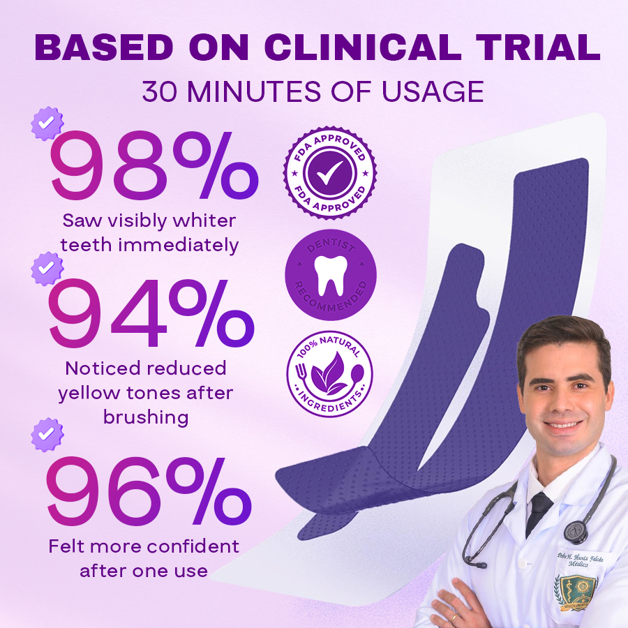 Our clinical user study surveyed over 1,200 participants using NEGUSY™ Purple Whitening Teeth Strips over a 14-day period. The results speak for themselves: