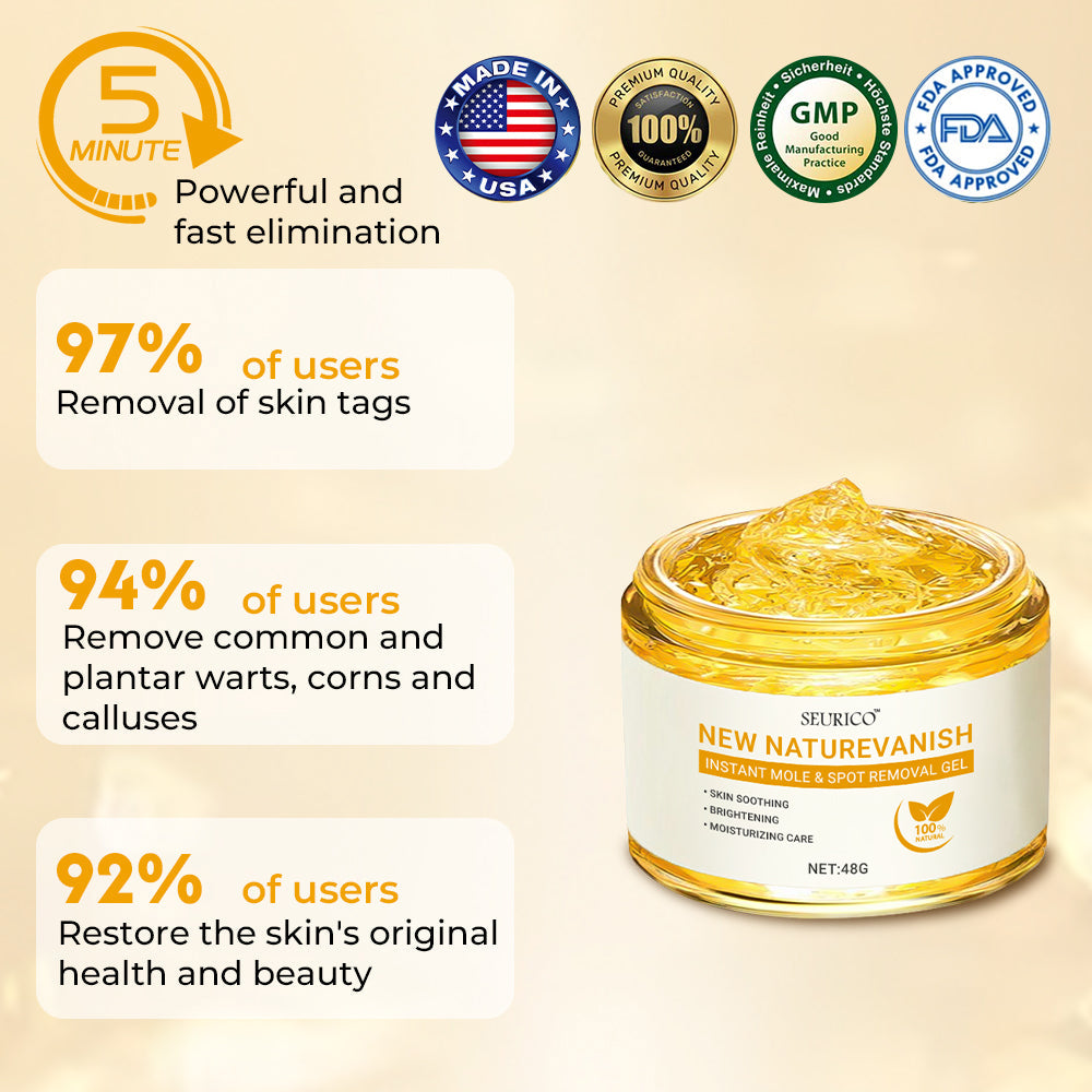✅ Quick & Effective Removal: The Seurico™ New NatureVanish Instant Gel rapidly eliminates moles, skin tags, and blemishes with ease—completely pain-free and irritation-free.