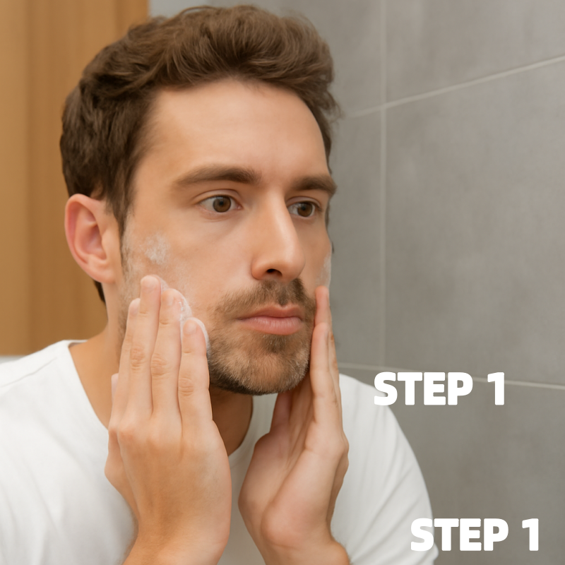 Start by thoroughly cleansing your face (preferably with Particle Face Wash) before gently patting your face dry.