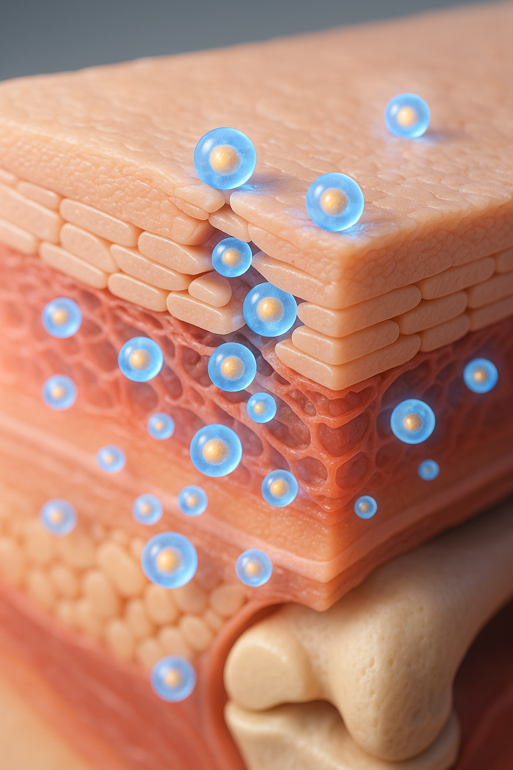 • Step 3: Delivery. The NLCs carry the soothing ingredients deep into the sub-dermal tissue where joint tension originates.