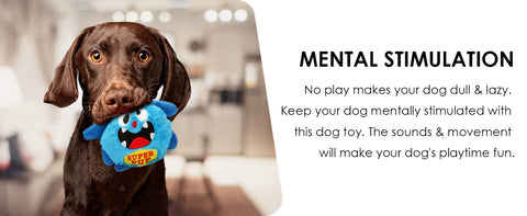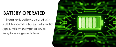 The Trembling Monster is powered by batteries and features vibrations, jumps, and barking sounds to engage your dog. It mimics the movements and sounds of prey, stimulating your dog's natural instincts during playtime.