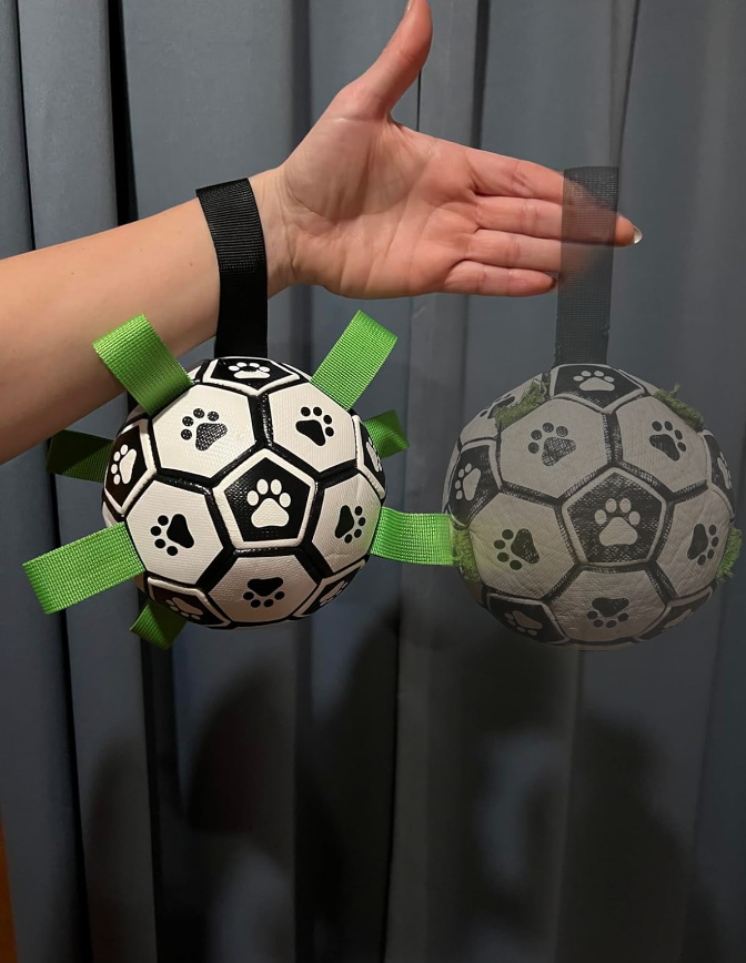 We guarantee you that your pup will LOVEViral Doggie Ball. At first glance, it looks like a regular soccer ball. However, because of sturdy nylon straps and a special corset mesh inside, it is Extremely durable and hard to tear apart. Your dog's attention will be focused mostly on the straps and not on the ball itself, making it a long-lasting toy. Most of our customers say they were surprised that their dogs couldn’t bite into Viral Doggie Ball easily and render it just another worthless piece of cloth.