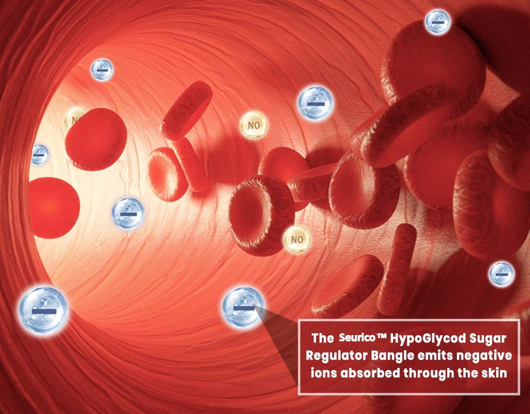 The Seurico™ HypoGlycod Sugar Regulator Bangle releases negative ions that are absorbed through the skin, promoting better circulation and potentially helping to lower blood sugar levels. These ions also play a key role in regulating insulin secretion and improving insulin sensitivity, which is essential for maintaining healthy blood sugar levels.